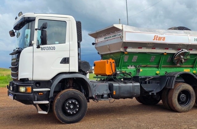 Câmera de Ré, Chave Reserva, GPS, Painel Digital, Para-choques na cor do veículo, Sem Gravame, Som original, Trio Elétrico, Turbo, Volante Escamoteável | Scania G 440 6x4 Off-road. Equipado com o Distribuidor Hercúles 24000 C inox. GPS e TAXA VARIÁVEL TOPPER 5500. ANO 2022. Comporta Dupla. * Motor 6 cilindros de 13 litros, potência máxima de 440 cv. * Câmbio automático optcruise 12 marchas * Diferencial: de Duplo Bogie com redução nos cubos. Projetado para as condições operacionais mais difíceis oferecendo força e resistência. Bloqueio do diferencial ( Longitudinal e transversal). * Freio Retarder Este veículo está sendo vendido c nota fiscal e garantia por três meses de motor, caixa e diferencial. | [2486781]
