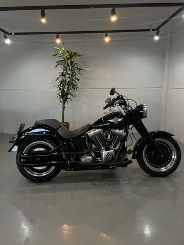 A lendária Fat Boy, no seu melhor estilo! Moto imponente, com visual clássico e presença marcante.