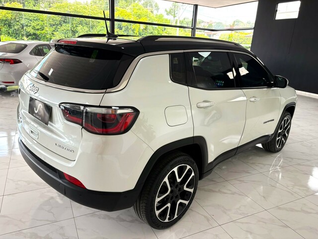 Jeep Compass Limited, SUV de alto padrão, com apenas 94.000 km rodados. Veículo de único dono, todas as revisões realizadas em concessionária autorizada Jeep. Esta versão se destaca em um elegante tom Branco Perola, complementando seu design sofisticado.