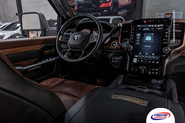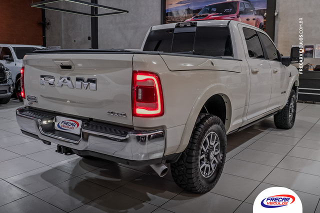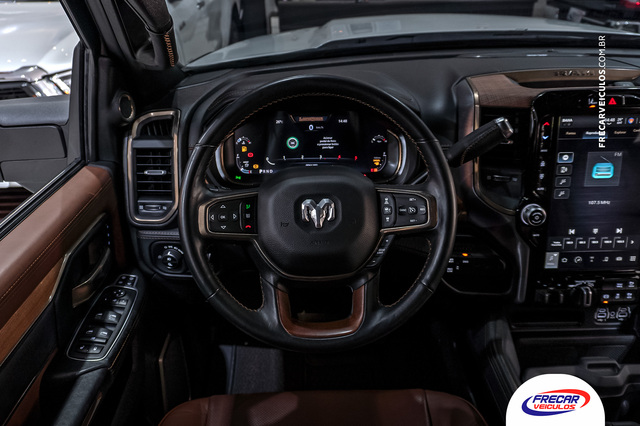 Apenas 21.265 mkm; Revisões na concessionária; Segundo dono; Cor Branco Pérola; Rambox; Estribos laterais elétricos; Quadro de instrumentos digital com tela de 12?; Central multimídia de 12? com Android Auto e Apple Carplay; RAM Connect; Divisor de caçamba; Motor Cummins 6.7 de 377cv; 1.694 kg de capacidade de carga e 9 toneladas de carga no reboque; Alerta de colisão frontal com frenagem; Som Premium Harman/Kardon com 17 alto-falantes e subwoofer; Câmera 360 graus; Sistema de monitoramento de ponto cego; Controle de ré do trailer; Adaptive Front-lightning System; Interior revestido em madeira de carvalho e couro Natura Plus; Controle de cruzeiro adaptativo; Acionamento elétrico da tampa da caçamba; Excelente estado de conservação.
